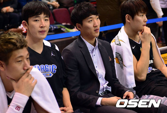 22일 오후 서울 잠실동 잠실실내체육관에서 열린 'KB국민카드 2013-2014 프로농구 올스타전' 경기 KCC 김민구가 참석해 벤치를 지키고 있다.