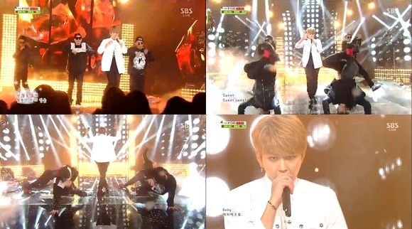 용준형은 22일 오후 3시 40분 방송된 SBS '인기가요'에서 신곡 ‘플라워’ 무대를 선보였다.