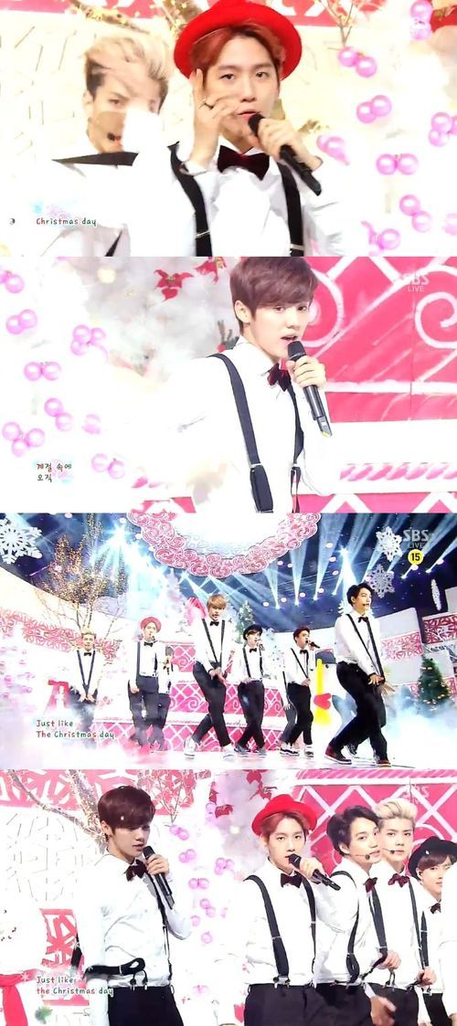 엑소는 22일 오후 3시 40분 방송된 SBS '인기가요'에서 12명의 멤버가 함께 나와 '크리스마스 데이'의 따뜻한 무대를 함께 꾸몄다.