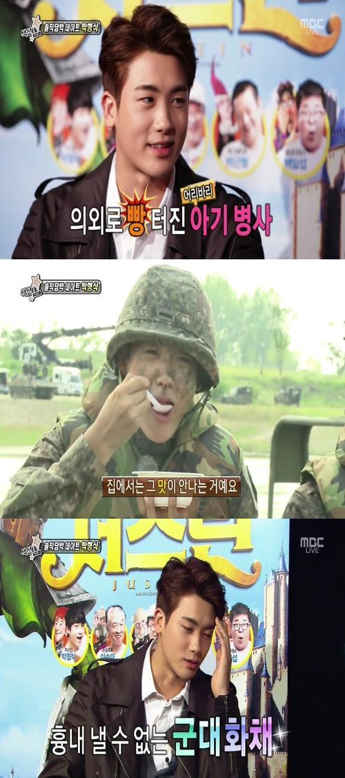 그는 가장 맛있던 음식을 꼽아 달라는 리포터의 질문에 "공병 부대에서 먹었던 수박 화채가 가장 맛있었다"며 "화채가 그런 맛이 나면 안 되는 것 아닌가 할 정도로 맛있었다"고 극찬하며 감탄사를 연발했다.