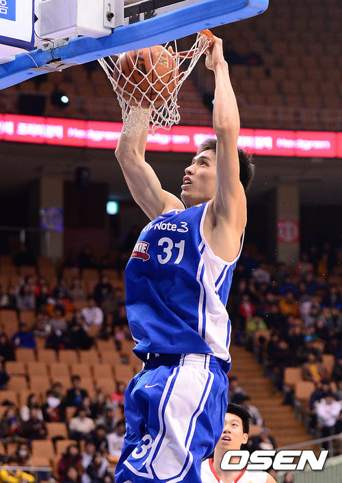 4쿼터 루키올스타 장재석이 덩크슛을 시도하고 있다.