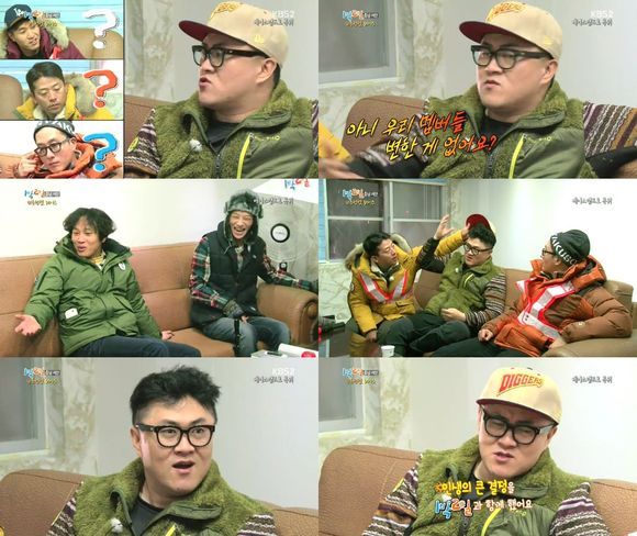 이에 멤버들은 아무 것도 알아보지 못했고, "머리를 깎았느냐?"며 또 한 번 무심한 말을 던졌다. 데프콘은 "진짜 무심하다. 섭섭하다. 우리는 하나라면서 형"이라며 "인생의 큰 결정을 '1박2일'과 함께 했다"라고 운을 뗐다.