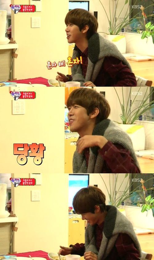 그룹 제국의아이들의 황광희가 팔에 착용하고 있는 팔찌를 커플 팔찌로 보고 추궁하는 추성훈의 다그침에 당황했다.
