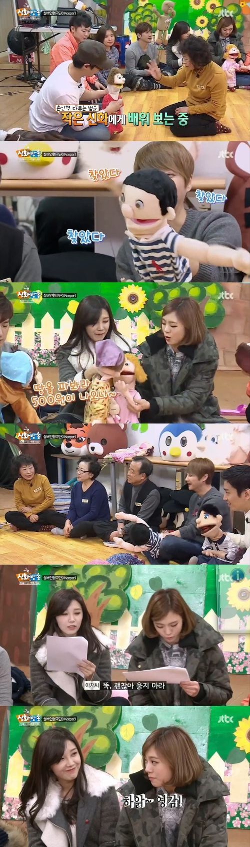 'I keeper'는 어린이집 유치원 등을 돌며 인형극 봉사를 하는 실버인형극단. 정은지와 리지는 신화 멤버들과 함께 손인형 다루는 법 등을 배우며 첫 인형극에 도전했다.