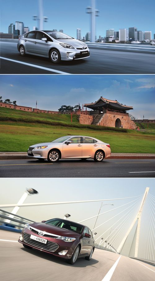 위에서부터 토요타 프리우스, 렉서스 ES 300h, 토요타 아발론. /한국토요타 제공.