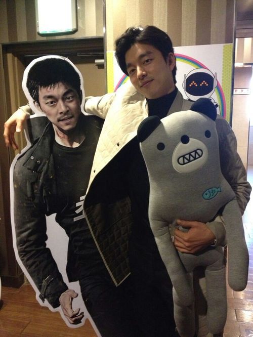 지난 22일 매니지먼트 숲 공식 트위터에는 ‘24일 용의자 개봉 전 부산, 대구 관객 분들의 뜨거운 기운을 받고 서울로 올라가던 날. 대구에서 ‘지동철’과 공유가 만났을 때’라는 글과 함께 무대인사 도중 한 손에는 팬에게 선물 받은 인형을 안고 다른 한 손은 ‘용의자’ 지동철 등신대를 끌어 안은 공유의 모습을 공개했다.