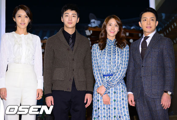 23일 오후 고양시 일산 킨텍스의 세트장에서 열린 KBS 2TV 월화드라마 '총리와 나'(극본 김은희, 윤은경 연출 이소연)의 현장 공개 행사에서 채정안 윤시윤 윤아 이범수가 포토타임을 갖고 있다.