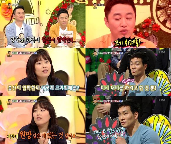또 "양수가 터지고 출산이 임박했는데 남편은 고기뷔페를 가자고 하더라"고 말해 모두를 깜짝 놀라게 했다. 이에 남편은 "퇴근길에 소식을 듣고 병원으로 가느라 밥 때를 놓쳤다. 첫 출산이라 시간이 오래 걸릴 줄 알고 뷔페에 갔었다. 그런데 결국 못 먹었다. 혼자는 입장이 안 된다고 하더라"고 말해 웃음을 자아냈다.