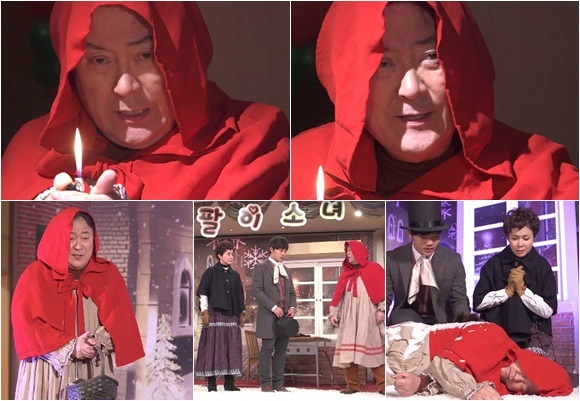 방송에 앞서 공개된 사진에서는 빨간 망토와 깜찍한 원피스를 입은 노주현의 모습이 눈길을 끌고 있다. 노주현은 평소 근엄한 모습과는 전혀 어울리지 않는 귀여운 망토와 원피스를 입고, 한 손에는 바구니까지 들며 '성냥팔이 소녀'로의 코믹한 변신을 선보였다.