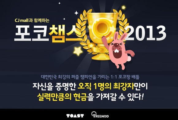 먼저 'CJ 몰과 함께하는 포코챔스 2013’라는 제목으로, '포코팡' 챔피언을 가리는 대회를 개최한다. 신청접수는 26일까지로 접수기간내 포코팡 점수가 100만점 이상이면 누구나 참가할 수 있다. 접수기간내 최고 점수 기준으로 32명을 선정해 내년 1월 4일 NHN엔터테인먼트 본사에서 본선 대회가 진행될 예정이다.