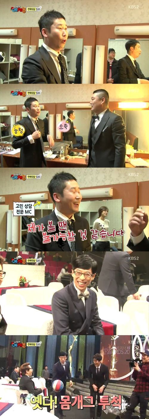 24일 오후 방송된 KBS 2TV '우리동네 예체능'에는 2014 KBS 연예대상에 참석한 멤버들의 모습이 그려졌다.