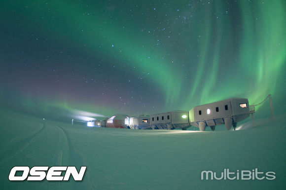 하지만 이 사진은 남극에서 직접 촬영한 것으로 알려졌다. 사진 속 건물은 영국의 남극 연구소이며 이 연구소 요리사 앤소니 더버가 촬영한 것으로 알려졌다.