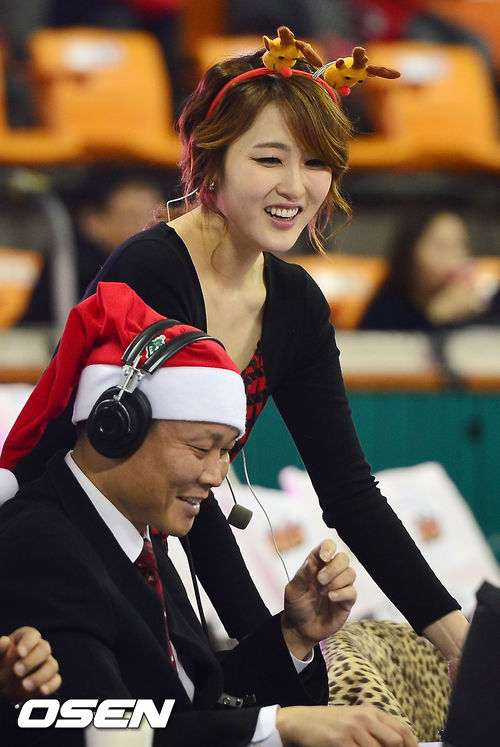 경기 전 SBS ESPN 아나운서 신아영이 조성원 해설위원과 즐겁게 얘기를 나누고 있다.