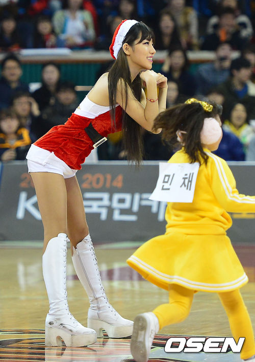 2쿼터 SK 치어리더들이 화려한 공연을 펼치고 있다.