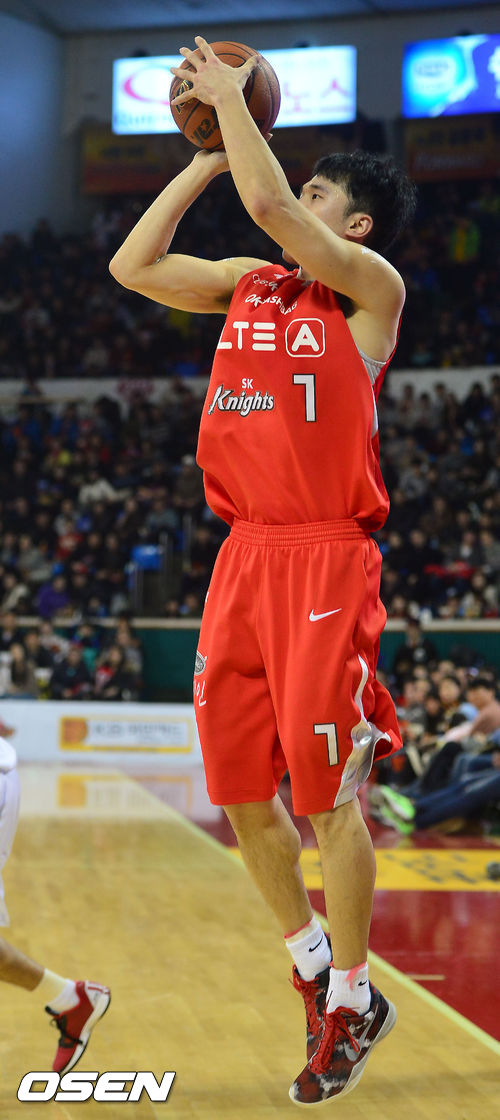 4쿼터 SK 변기훈이 3점슛을 날리고 있다.