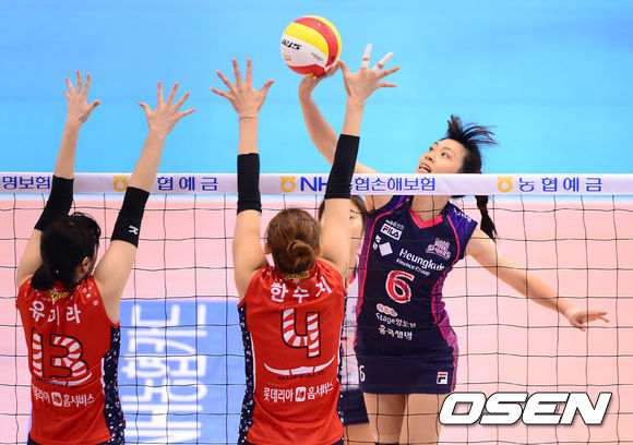 1세트 흥국생명 주예나가 KGC인삼공사의 블로킹 벽을 피해 공격을 시도하고 있다./sunday@osen.co.kr