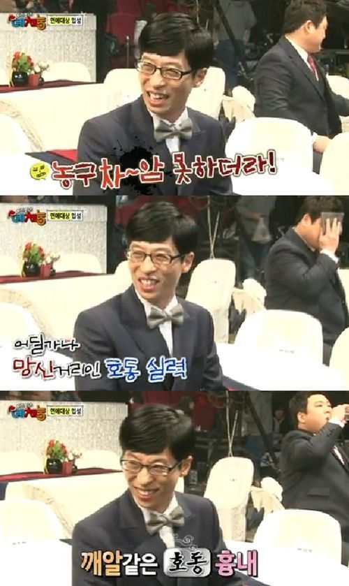 강호동은 "그냥 찍는 거다. 여기 공기가 다 네 거냐"라고 유치한 말싸움을 걸었고, 이에 유재석도 "농구 참 못하더라. 깜짝 놀랐다"라고 강호동을 놀려 좌중을 폭소케 했다.