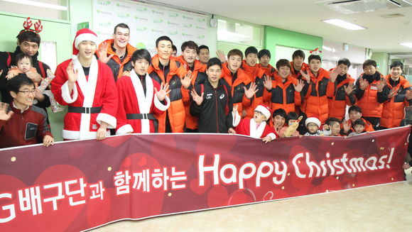 선수단은 전일 구미에서 한국전력과의 풀세트 경기를 마친 피곤한 몸을 이끌고 25일 크리스마스 당일 경기도 광주에 위치한 ‘한사랑장애영아원’을 방문하였다. 이곳은 지난 추석때 봉사활동을 했던 곳으로, 일부 선수들은 일정금액을 매달 후원하는 등 깊은 애정을 가지고 있는 곳이다.