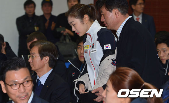 26일 오전 서울 공릉동 태릉선수촌 챔피언하우스에서 열린 2014 소치동계올림픽 선수단 교육 및 참가 자격 서명식에서 김연아가 참석하고 있다.