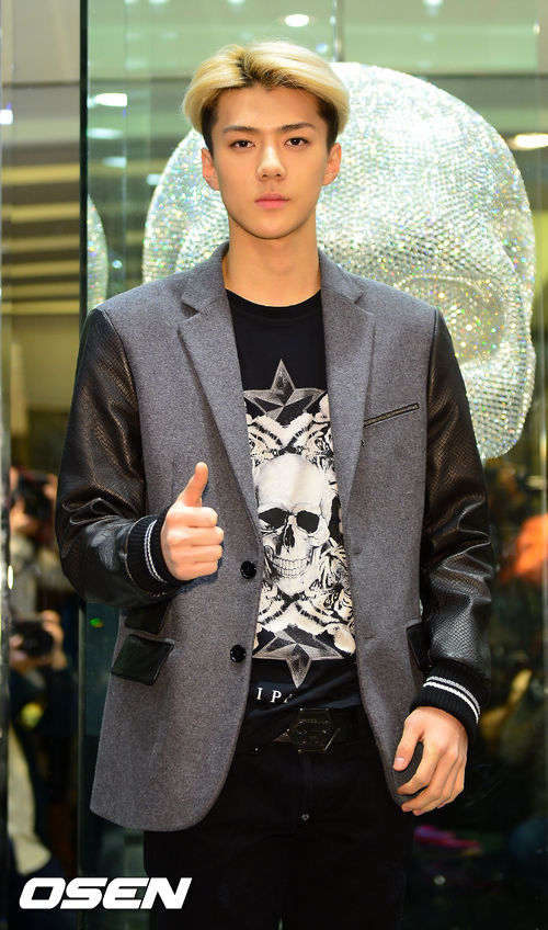 26일 오후 서울 명동 롯데 에비뉴엘 명품관 4층 PHILIPP PLEIN(필립 플레인) 오픈행사에서 엑소 세훈이 포토타임을 갖고 있다..