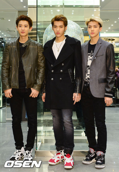 26일 오후 서울 명동 롯데 에비뉴엘 명품관 4층 PHILIPP PLEIN(필립 플레인) 오픈행사에서 엑소의 찬열 크리스 세훈이 포토타임을 갖고 있다.