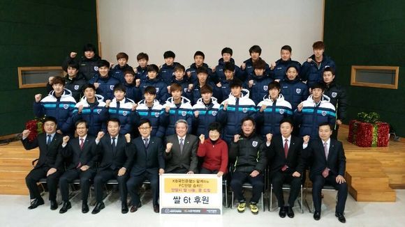 FC안양이 우리나라 최초의 아동복지시설 '좋은집'에서 KB국민은행과 함께 하는 '쌀나눔 꿈드림' 행사를 진행했다.