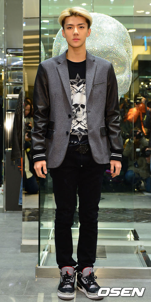 26일 오후 서울 명동 롯데 에비뉴엘 명품관 4층 PHILIPP PLEIN(필립 플레인) 오픈행사에서 엑소(EXO)의 세훈이 포토타임을 갖고 있다.