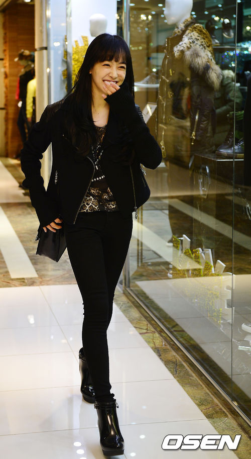 26일 오후 서울 명동 롯데 에비뉴엘 명품관 4층 PHILIPP PLEIN(필립 플레인) 매장 오픈행사에서 에프엑스의 빅토리아가 매장으로 향하며 미소짓고 있다.