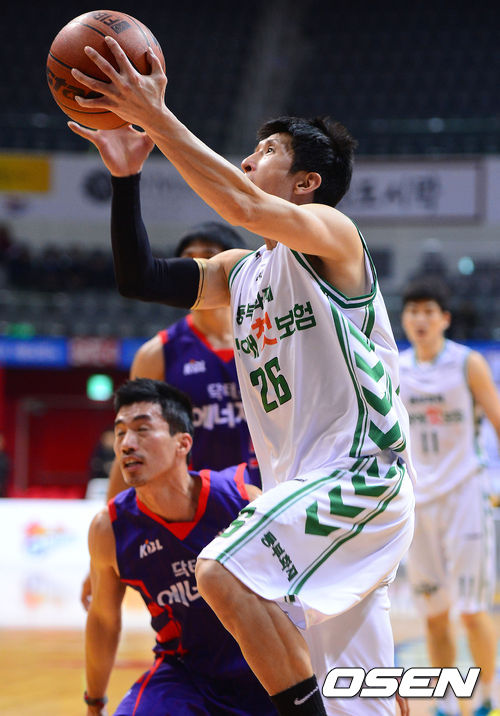 26일 오후 고양시 고양체육관에서 열린 '2013-2014 KB국민카드 프로농구' 고양 오리온스와 원주 동부의 경기, 2쿼터 동부 박지현이 레이업슛을 하고 있다.