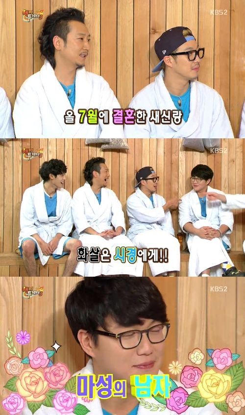 이에 ‘해피투게더3’ MC들이 “하하 씨도 그랬잖아요”라고 반문하자, 하하는 “얘가 짱이다”라며 화살을 성시경에게 돌렸다.