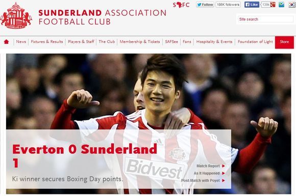 선덜랜드 홈페이지 캡쳐.