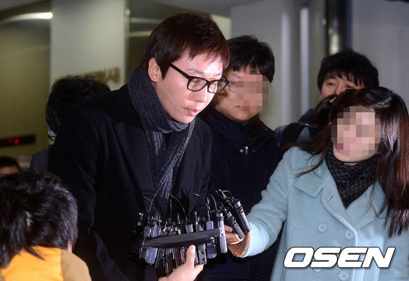 방송인 탁재훈이 법정을 나가며 취재진과 인터뷰를 하고 있다.