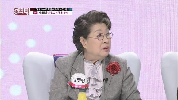 엄앵란은 28일 방송되는 MBN '동치미' 아내는 외톨이다 편 사전 녹화에서 “휴일이면 가족들과의 식사를 기대한다. 하지만 막상 일요일이 되면 가족들은 모두 외출하고 결국 집에 나 혼자 남는다”고 말문을 열었다.