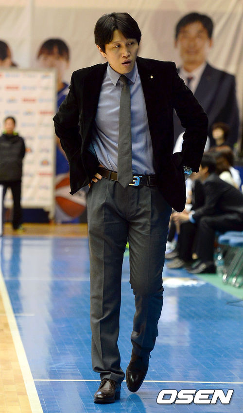 2쿼터, 위성우 우리은행 감독이 경기가 뜻대로 풀리지 않자 안타까운 표정을 짓고 있다.