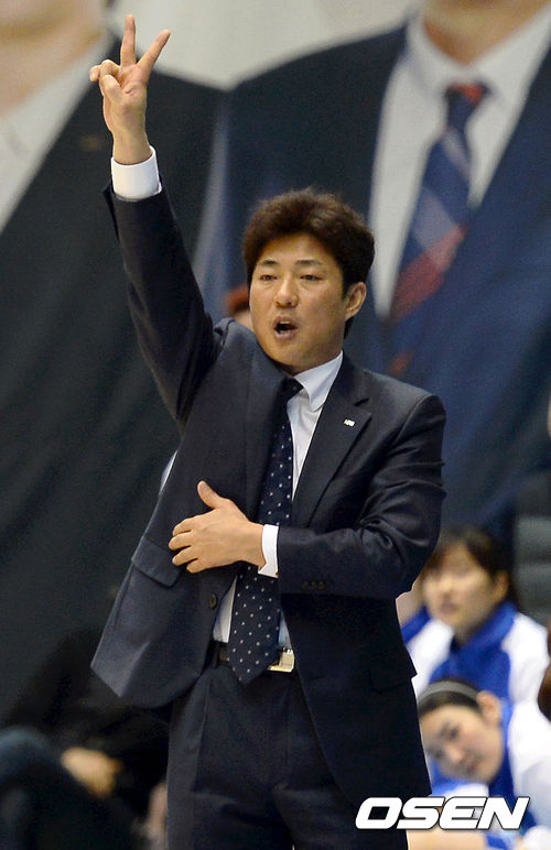 3쿼터, 안세환 KDB감독이 선수들에게 작전을 지시하고 있다.