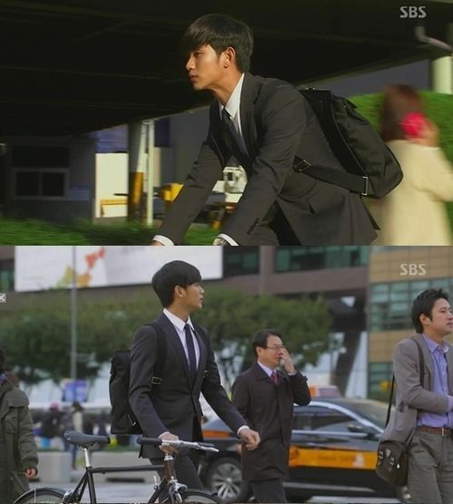 특히 자전거로 출퇴근하는 김수현의 수트룩이 눈길을 끌고 있다. 슬림한 핏이 돋보이는 베이직한 수트에 백팩을 매치해 자신의 댄디한 매력을 더욱 배가시킨 것.