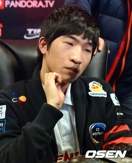 27일 오후 서울 용산 e스포츠 상설 경기장에서 열린 '판도라TV 리그 오브 레전드 챔피언스 윈터 2013-2014(이하 롤챔스)' CJ 블레이즈와 KT 불리츠의 8강전 경기, 2세트를 놓친 CJ 블레이즈 김진현이 아쉬워하고 있다.
