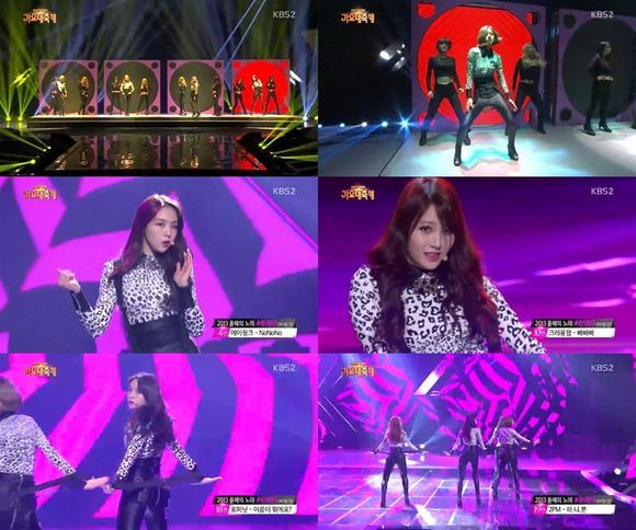 이날 방송에서 4명의 멤버들이 각각 섹시한 안무로 무대의 시작을 알린 걸스데이는 오랜만에 '기대해'로 멜빵춤을 선보여 눈길을 끌었다.