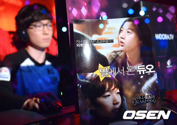 27일 오후 서울 용산 e스포츠 상설 경기장에서 열린 '판도라TV 리그 오브 레전드 챔피언스 윈터 2013-2014(이하 롤챔스)' CJ 블레이즈와 KT 불리츠의 8강전 경기, KT 불리츠 원상연과 고동빈을 위해 팬들이 준비한 독특한 문구의 전단지가 눈에 띈다.