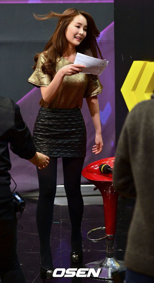 인터뷰를 마친 조은나래 리포터가 짧은 치마 의상에 곤혹스러워하고 있다. / soul1014@osen.co.k