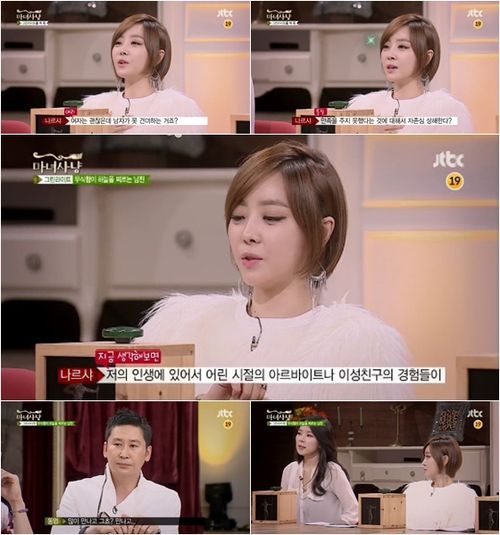 브라운아이드걸스의 나르샤가 위풍당당 성인돌의 위엄을 드러냈다. 나르샤는 ‘마녀사냥’에서 거침없는 19금 토크에 합류하며 시원시원한 입담을 자랑했다. ‘마녀사냥’ 방송 이래 이렇게까지 속 시원하게 자신의 경험을 고백하는 게스트는 없었다.