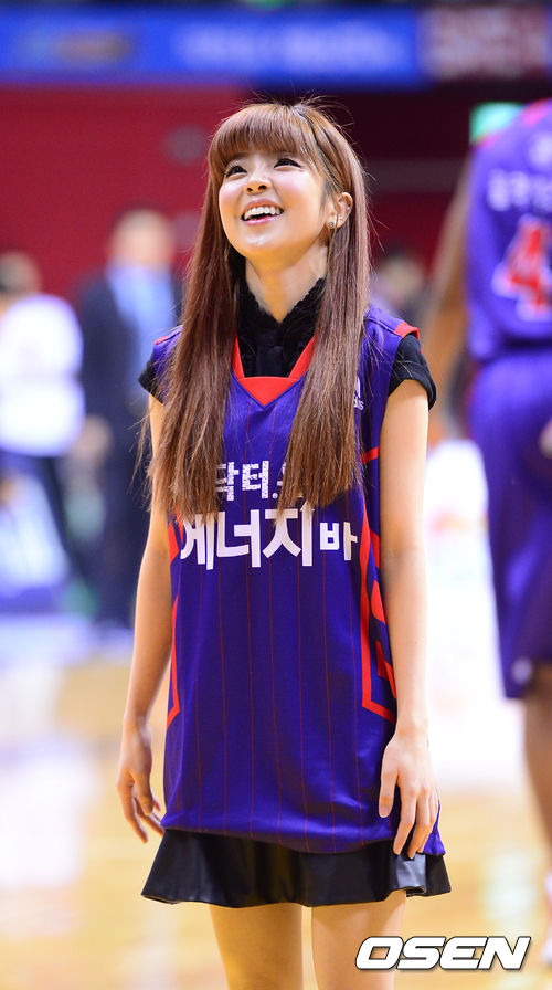 28일 오후 경기도 고양시 고양실내체육관에서 열린 'KB 국민카드 2013-2014 프로농구' 고양 오리온스와 서울 SK의 경기에 앞서 가수 헤이니가 시투에 앞서 림을 바라보고 있다.