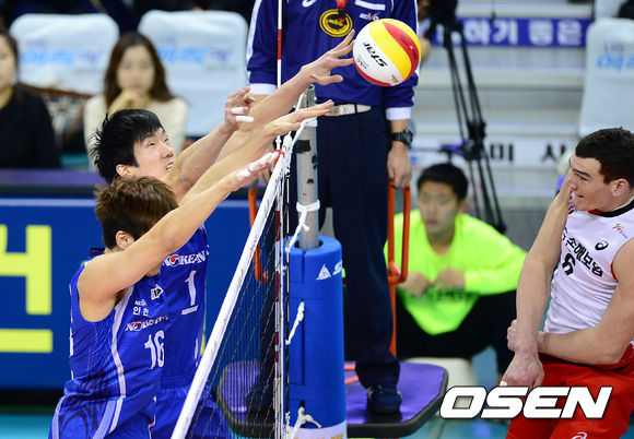 2세트 대한항공 신영수가 블로킹에 성공하고 있다.