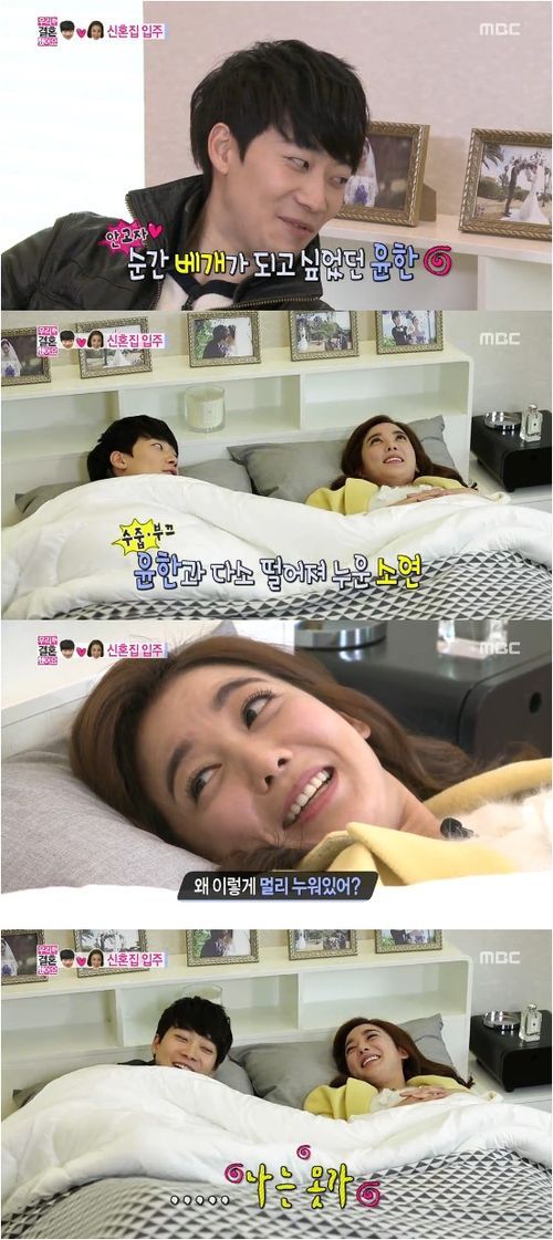 윤한은 28일 방송된 MBC 예능프로그램 ‘우리 결혼했어요 시즌 4’(이하 ‘우결4’)에서 신혼집에 당도한 침대에 누운 후 “함께 눕자”고 제안했다.