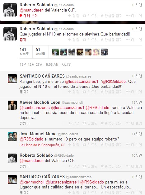 솔다도는 28일(이하 한국시간) 자신의 트위터를 통해 도르트문트와 발렌시아 유스팀 경기를 본 소감을 밝혔다. 특히 "지금 뛰고 있는 10번 누구죠? 끝내주네요"라며 특정 선수에 대해 관심을 드러냈다. 솔다도의 이 글을 본 팬들은 '어느 팀 10번이냐'는 질문을 했고 이에 솔다도는 "발렌시아 10번"이라고 답했다.
