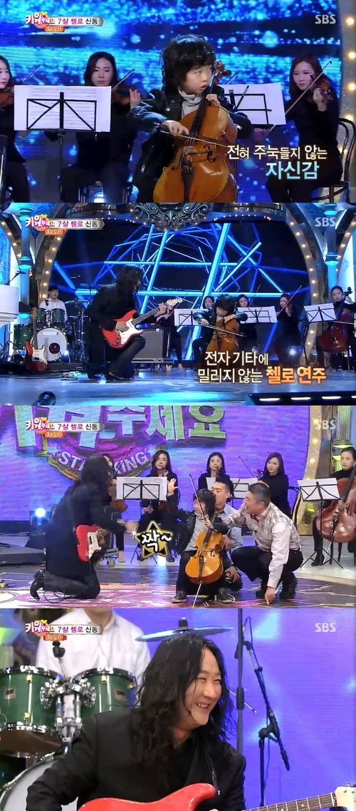 유명 기타리스트 김도균이 최연소 첼로 신동 유준 군과 록 음악으로 콜라보레이션 무대를 선보였다.