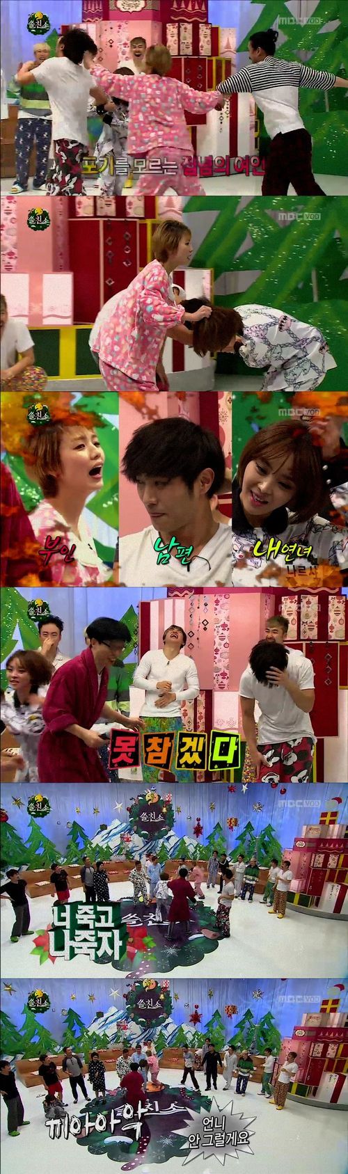안영미는 끈질기게 진구를 쫓았고 이때 나르샤가 진구와 짝을 이뤘다. 결국 안영미는 진구의 머리끄덩이를 잡았다. 마치 바람핀 남자친구의 현장을 잡은 듯한 분위기였다. 급기야 안영미는 나르샤의 머리끄덩이까지 잡아 ‘사랑과 전쟁’ 같이 살벌한 분위기를 연출했다.