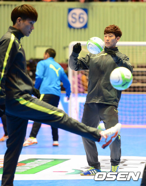 29일 오후 서울 잠실실내체육관에서 열린 홍명보 자선축구경기 'Share the Dream Football Match 2013'에서 손흥민이 몸을 풀고 있다.