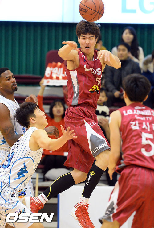 1쿼터, LG 김종규가 김시래에게 패스를 하고 있다.