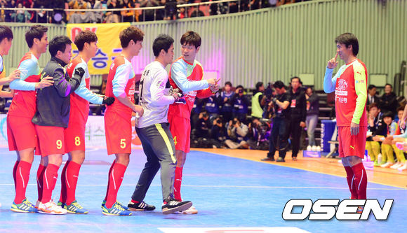 29일 오후 서울 잠실실내체육관에서 열린 홍명보 자선축구경기 'Share the Dream Football Match 2013'에서 이용이 골을 넣고 홍명보 감독과 팀동료들이 세레모니를 준비하고 있다.